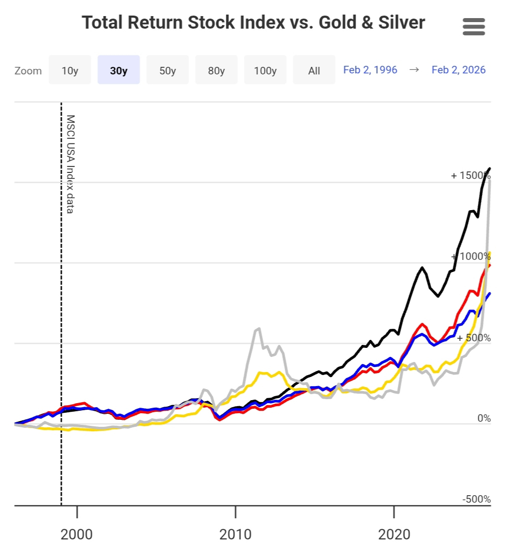 Stocks vs. Gold and Silver - Updated Chart | LongtermTrends